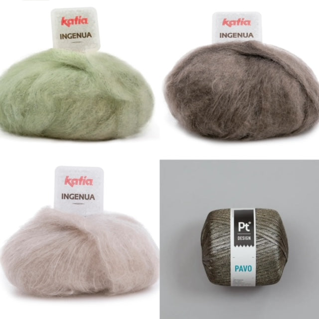 Materiale Ingenua mohair 50 g= +/- 140 meter samt Pavo effektgarn